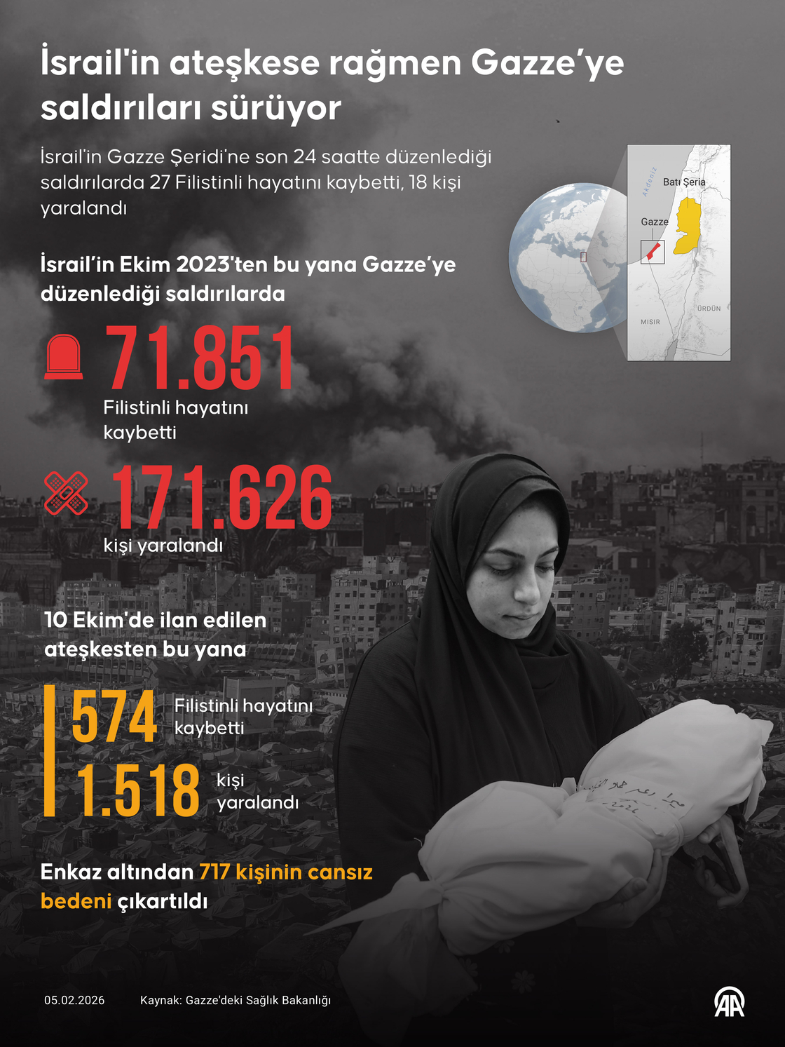 İsrail’in ateşkese rağmen Gazze’ye saldırıları sürüyor Posted on Şubat 6, 2026Nisan 27, 2026 Kaynak: AA