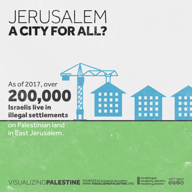 4- Israeli settlements in the occupied Palestinian territories are illegal under international law. Today, over 200,000 Israelis live in settlements on Palestinian land in East Jerusalem.